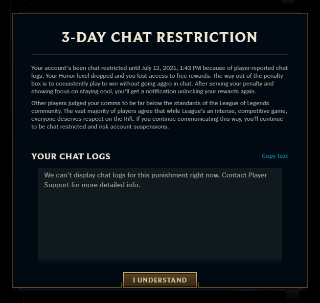 A los jugadores más tóxicos, se les penaliza con días sin poder utilizar el chat o sin poder jugar, desde 3 dias a baneo permanente.